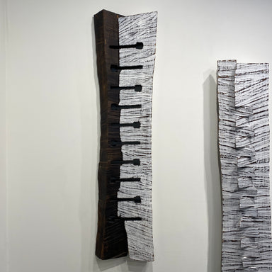 Inspired by African shields, this high contrast wall piece is made of carved, burned and painted maple. It hangs easily on the wall using a French ...