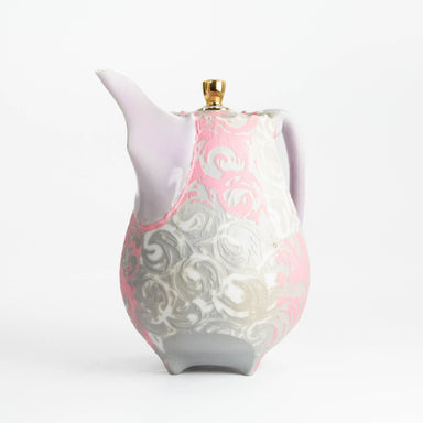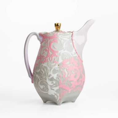 This elegant pitcher is made of Grolleg porcelain, colored porcelain, rare earth glaze, and gold. It measures 9.25 x 7.75 x 4.5". Please reference ...