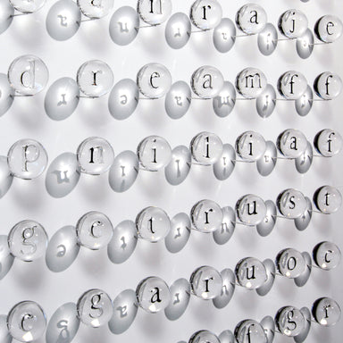 This impressive, 81-sphere glass word-search wall sculpture is part of a long-running series by artist Marc Petrovic. Entitled "Endeavor", this pie...